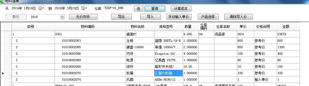 從用友的提取產(chǎn)品BOM,逐級展開到*末級材料,然后從價格庫中提取單價,卷積運(yùn)算到每個層次的成本,按順序由低層到高層完成所有成本BOM層次的標(biāo)準(zhǔn)成本計算。